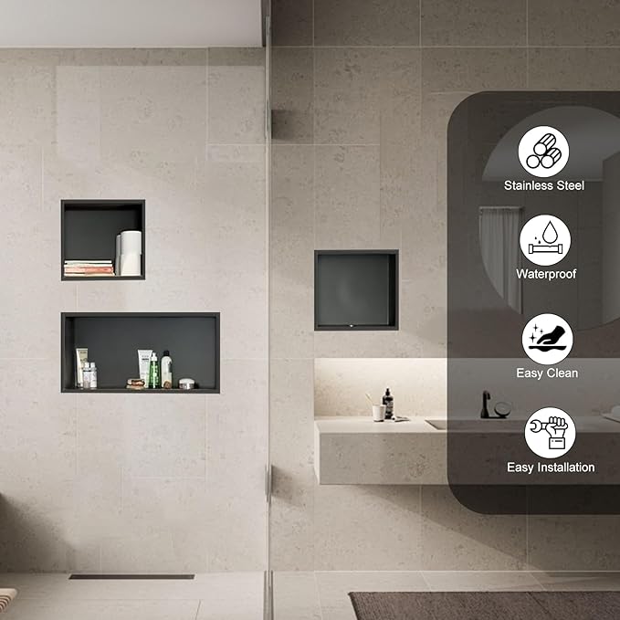 Convenient Storage: This waterproof shower niche provides an space to neatly organize and store shower essentials like soap, shampoo and conditioner bottles.