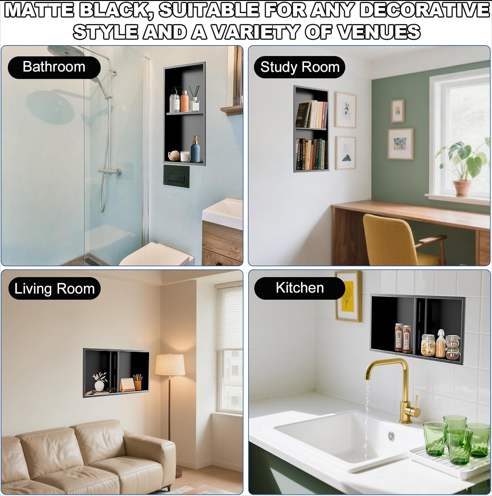 5) Long-Lasting and Durable: With its high-quality construction and durable materials, this shower niche is built to withstand the test of time. The steel surface is resistant to scratches and rust, ensuring a long-lasting product that maintains its sleek appearance. Whether in a wet bathroom, kitchen, or living room, this niche provides practical, stylish, and durable storage solutions for your everyday needs.