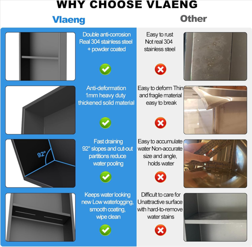 4) Versatile and Stylish Storage Solution: Not only is this stainless steel shower niche ideal for bathroom storage, but its sleek and aesthetic design makes it perfect for other areas such as kitchen, living room, or bedroom. It offers an organized, clutter-free way to store bottles, tools, and other small items, improving the overall style and appearance of your interior spaces.