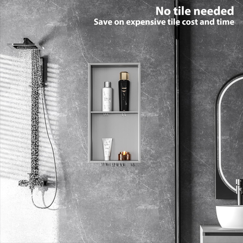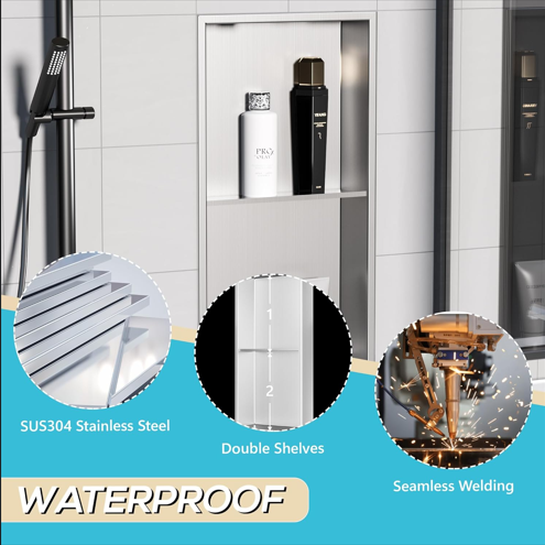 Brushed Nickel Recessed Shower Niche (12” x 24“), No-Tile, Stainless Steel, Built-in Wall for Bathroom, Bedroom, Living Room Storage
