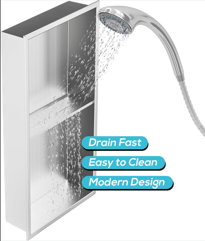 3) [Easy Installation]: The shower niche is very easy to install. Simply mark the size before starting to install, cut the right size, put in and seal the niche. Follow the instruction manual, it should take less than 15 minutes to finish installation.
