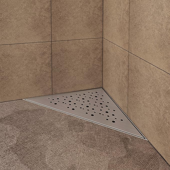 Silver Shower Drain with Siphon Floor and Shower Drain Triangular Circles 25 x 25 cm